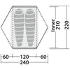 The combination of dome style and short transverse ridge pole offers the users good living, cooking and storage space. Excellent internal height allows both users to sit side by side. Twin doors allow each person easy access and options in door opening to shelter from the wind as well as delivering cross ventilation.