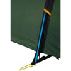 By 'unclipping' the front tip of the inner tent, the space in the vestibule can easily be enlarged. Simply push the unhooked inner tent to the rear to give more room, for cooking and also wet weather protection.